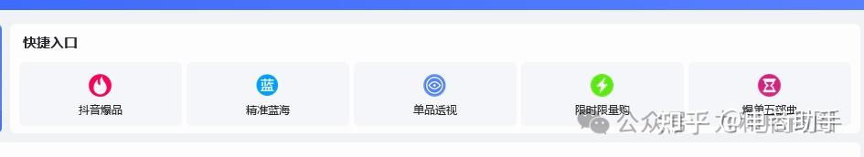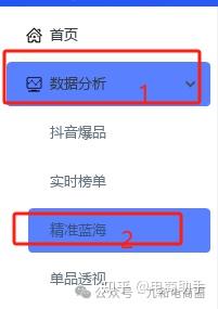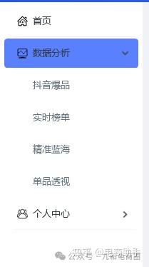 侧栏部分是一个导航 ,点击想要的使用功能可以跳转到要是使用的功能,例如:“数据分析”-“抖音爆品”