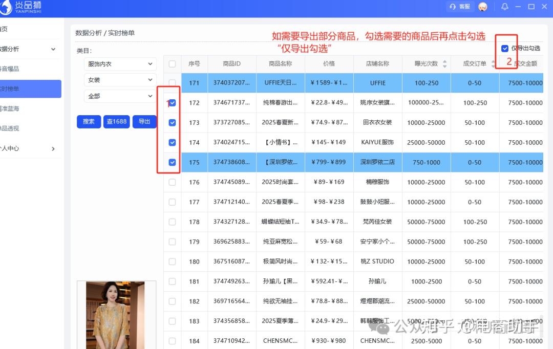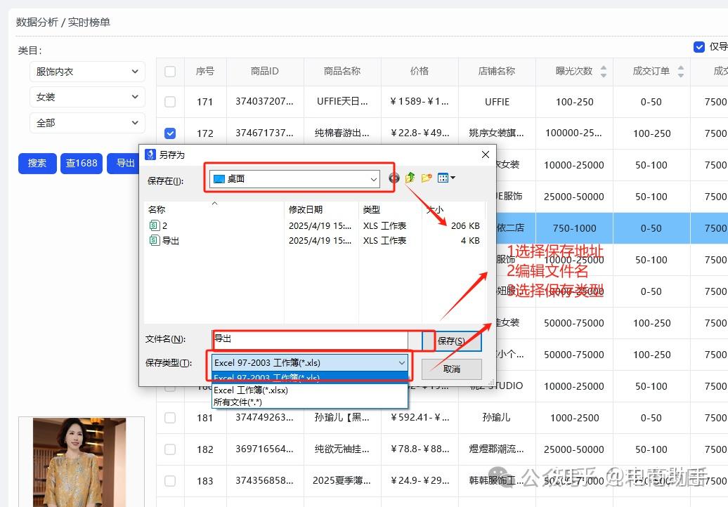 如只要导出部分商品操作流程:勾选需要的品(点击商品可以在右下角显示商品图片)-勾选仅导出勾选-点击导出商品-选择要导出的地址-编辑文件名-选择保存类型