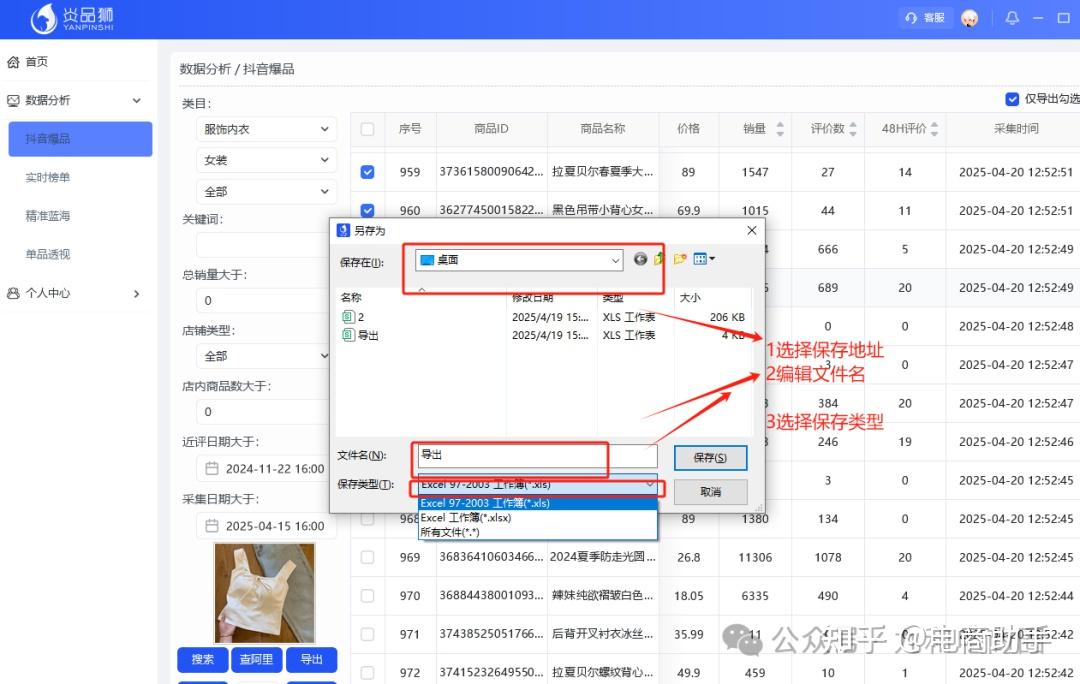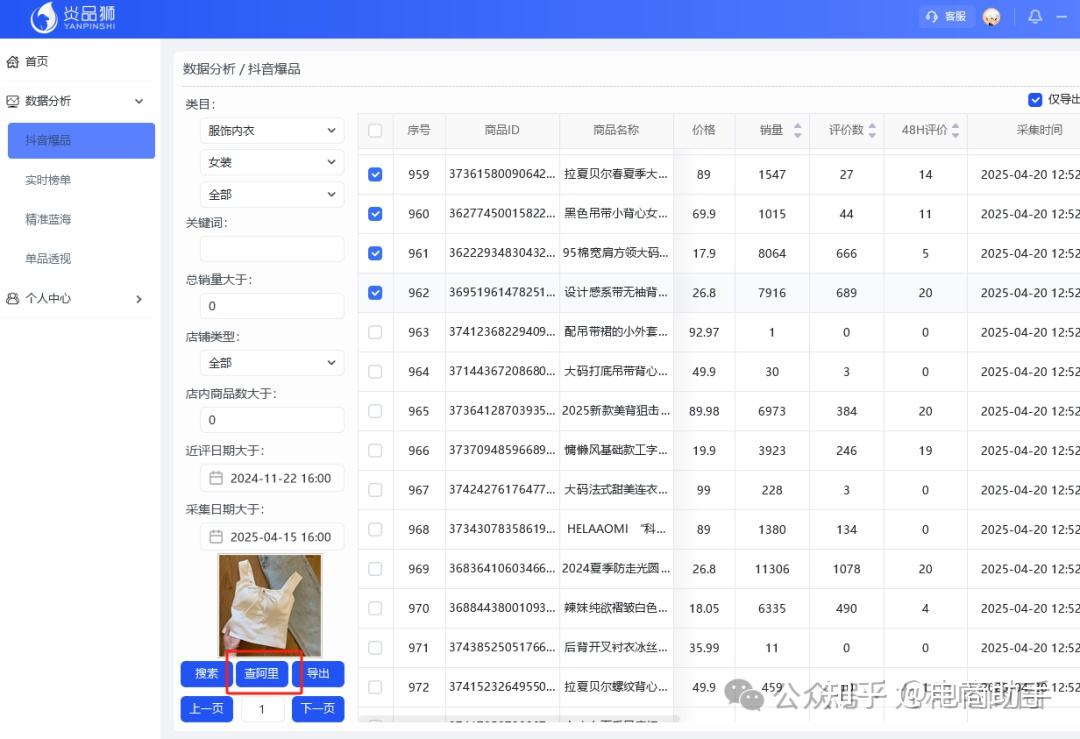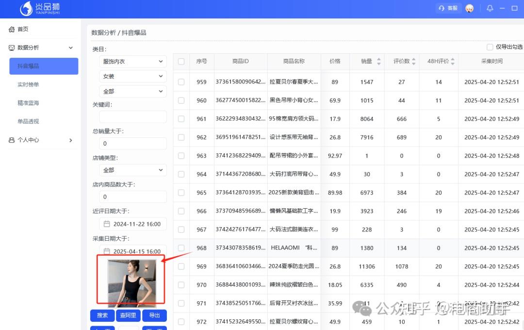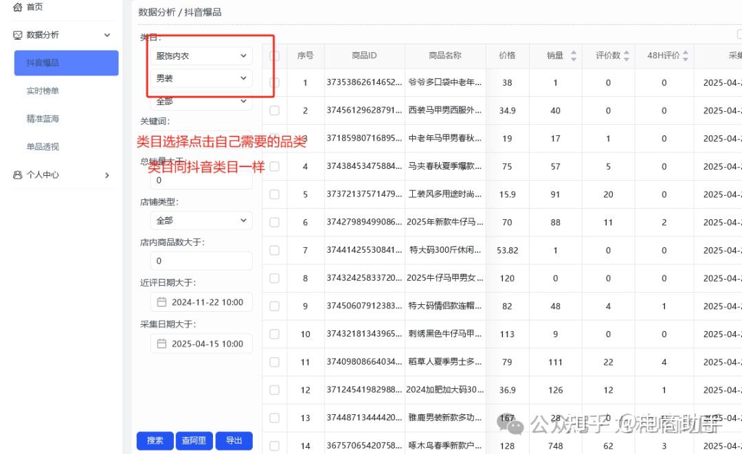 使用侧栏为“数据分析—抖音爆品”