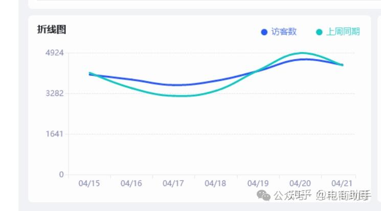 点击店铺后面的“检查”则在“折线图”中显示“访客数”和“上周同期”访客数 的折线图