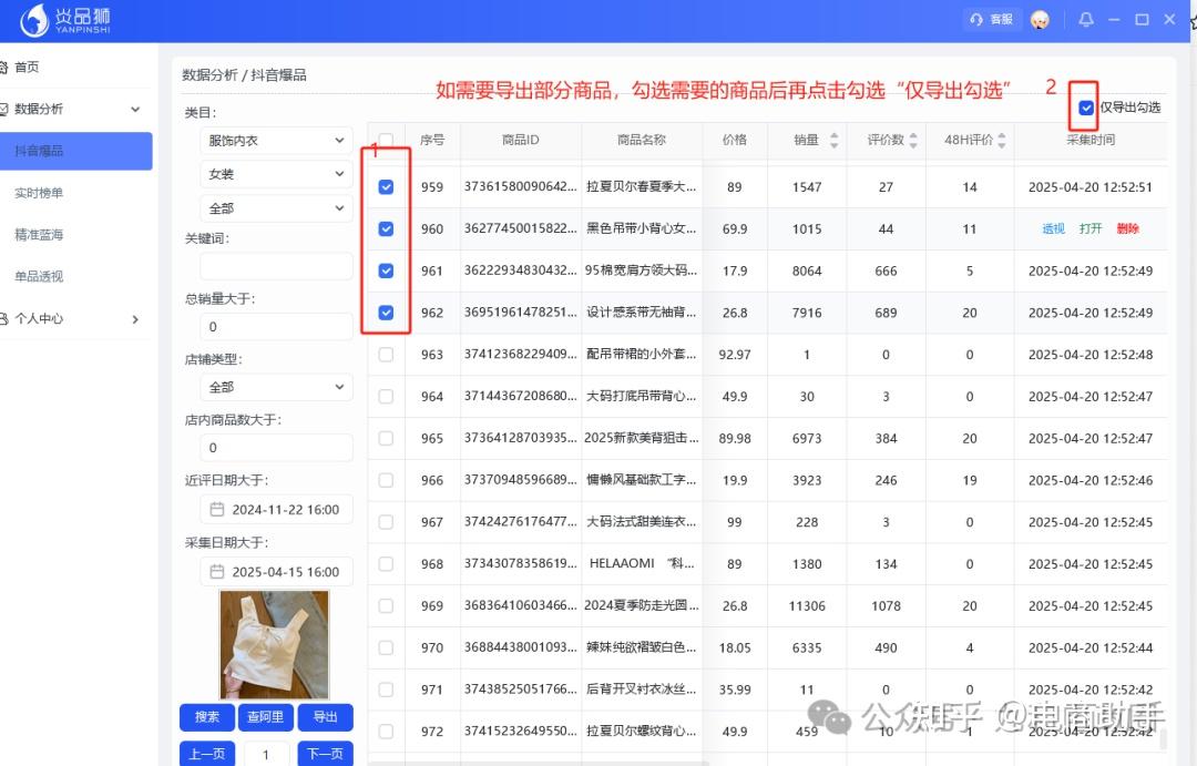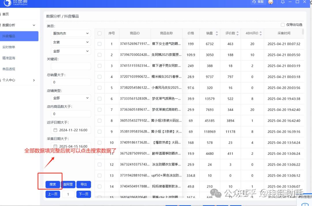 注:采集是我们自己有全行业爆品词数据库,然后再抖音搜索关键词。按照采集标准过滤。不是抖音所有的品