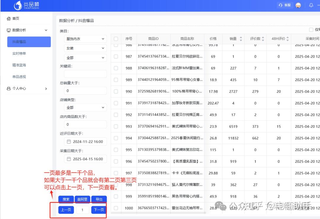一页多是一千个品,如果大于一千个品就会有第二页第三页,可以点击上一页,下一页查看。