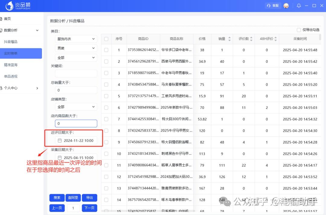 采集日期大于:是指我们采集到商品的日期(例如选择的日期是2025.04.15 10:00,那么我们在2025.04.15 10:00 之前的采集的商品就不会显示)