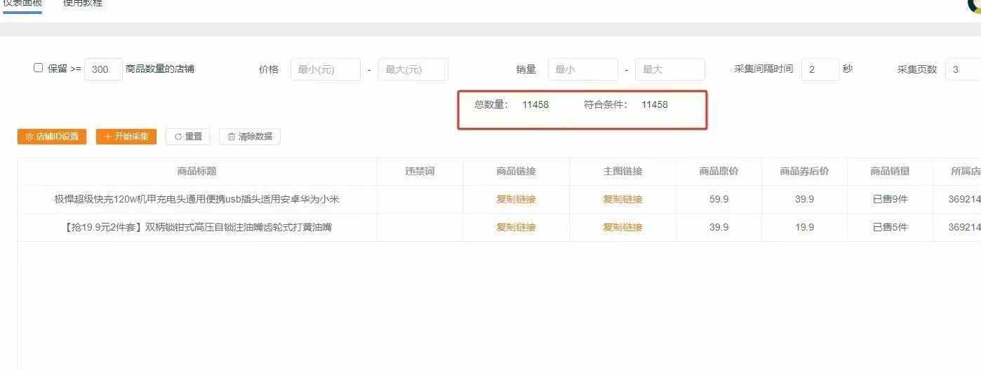 批量下载:支持批量采集整店商品ID,节省用户时间。