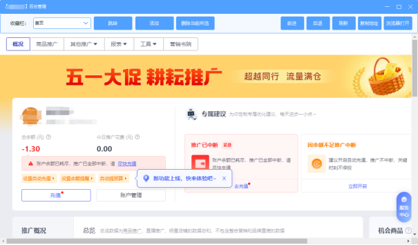 系统提供推广设置的功能,商家可以为商品创建推广计划,从而提高商品曝光量和交易额。