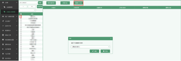 勾选店铺,点击“店铺移入分组”,选择对应的分组,即可将店铺归入分组下。