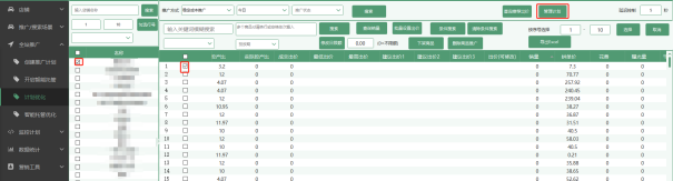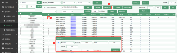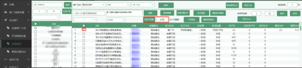 进入【创建推广】-->【计划优化】栏目,选择店铺,选择查询的日期范围,点击“查询”,也可以输入商品id或关键字等进行搜索,系统自动获取商品全站推广的流量和推广信息