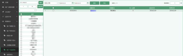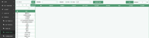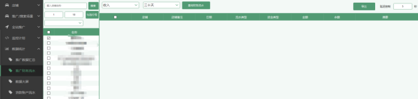 进入【数据统计】-->【推广财务汇总】,可以选择流水类型,查询的日期范围,点击“查询财务数据”,系统自动计算店铺财务流水数据