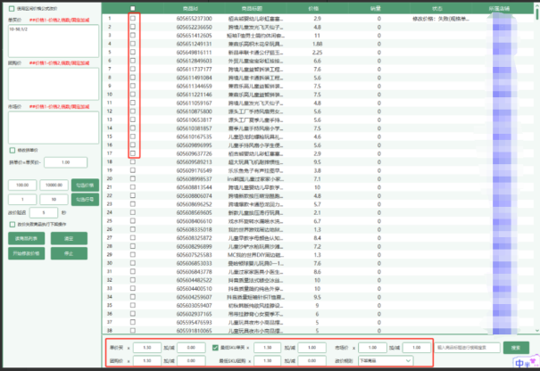 也可以批量选择商品,对所选商品设置价格公式,设置后,点击“开始修改价格”,系统自动对商品按照设置的公式进行改价。