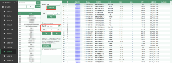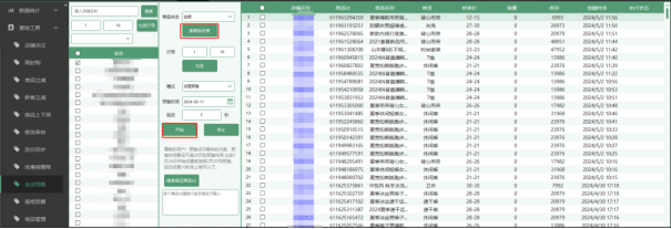 商家可在【营销工具】-->【商品上下架】下,设置某价格区间,或具有某些关键字的商品进行批量上下架操作。选择执行操作类型,然后点击“开始”,系统自动对价格区间的商品或包含某关键字的商品进行批量上下架操作