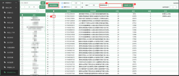 商家可在【营销工具】-->【修改库存】下,获取商品后,批量选择商品,输入修改数量,点击“修改库存”,即可对商品库存进行修改