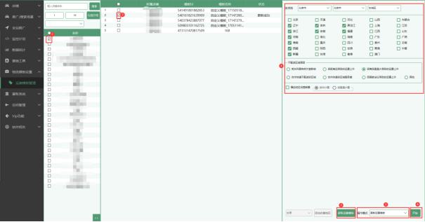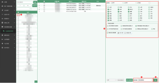 也可以点击“读取运费模板”,系统读取店铺已有的物流模板,勾选模板,同样设置发货地、不配送原因等选项,选择操作模式为“更新运费模板”,点击“开始”即可对原来的物流模板进行更新修改。